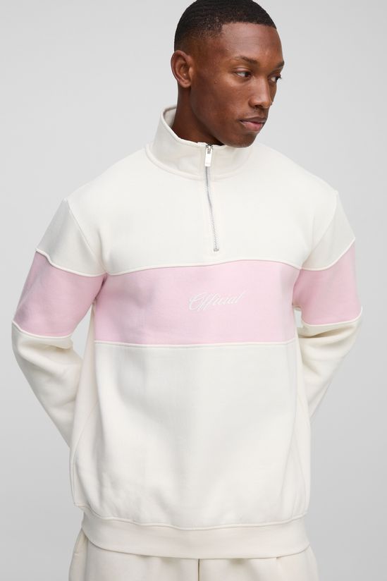 Regular Fit Script Colour Block Zip Funnel Neck Sweatshirt
