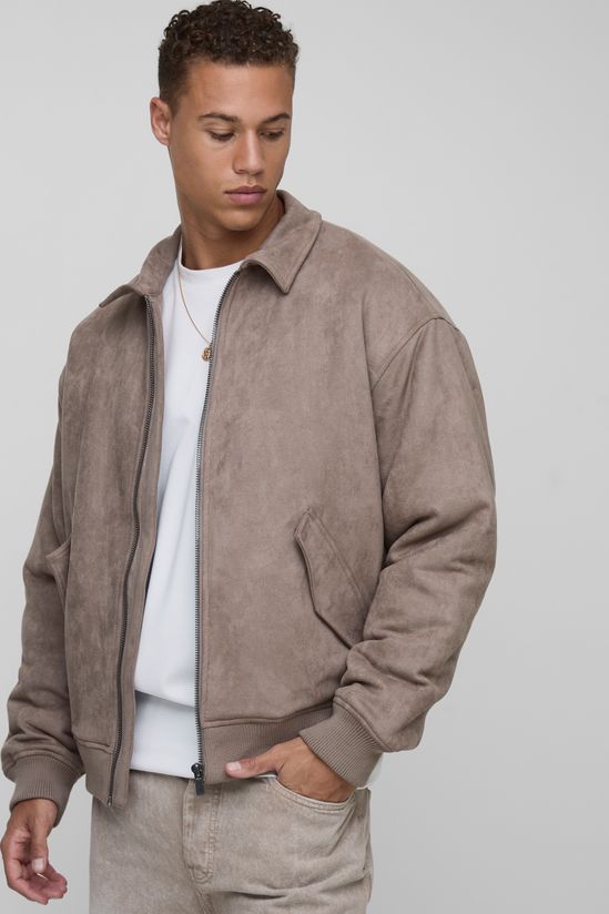 Tall Faux Suede Boxy Oversized Harrington Jacket