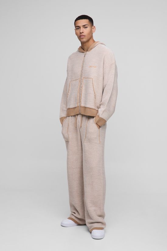Oversized Boxy and Wide Leg Knitted Jacquard Tracksuit